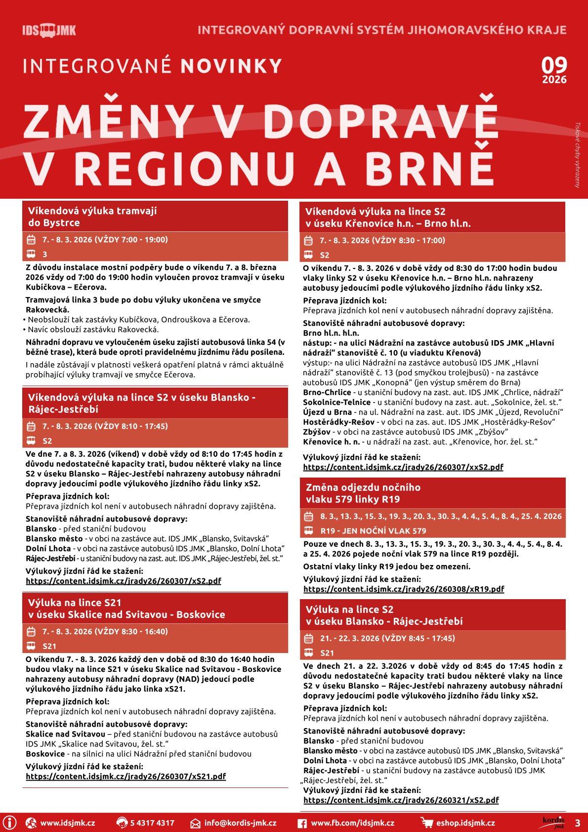 Informace IDS JMK - víkendová výluka vlak S2 Křenovice - Brno