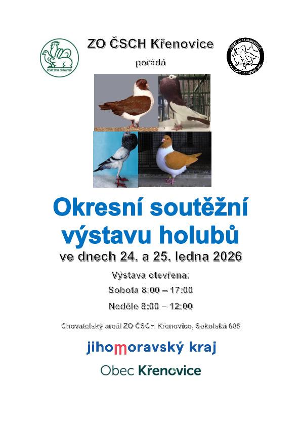Okresní soutěžní výstava holubů - Křenovice 24. a 25. 1.2026