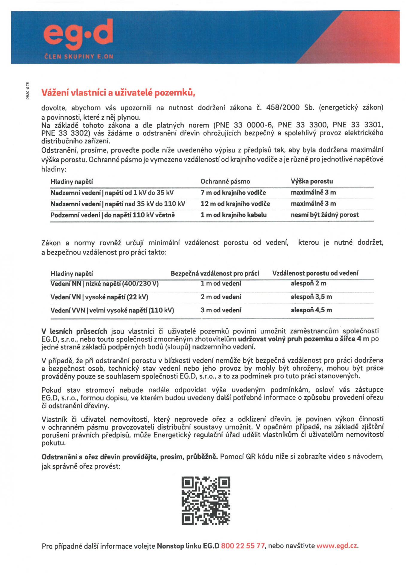 EG.D upozornění pro vlastníky a uživatele pozemků
