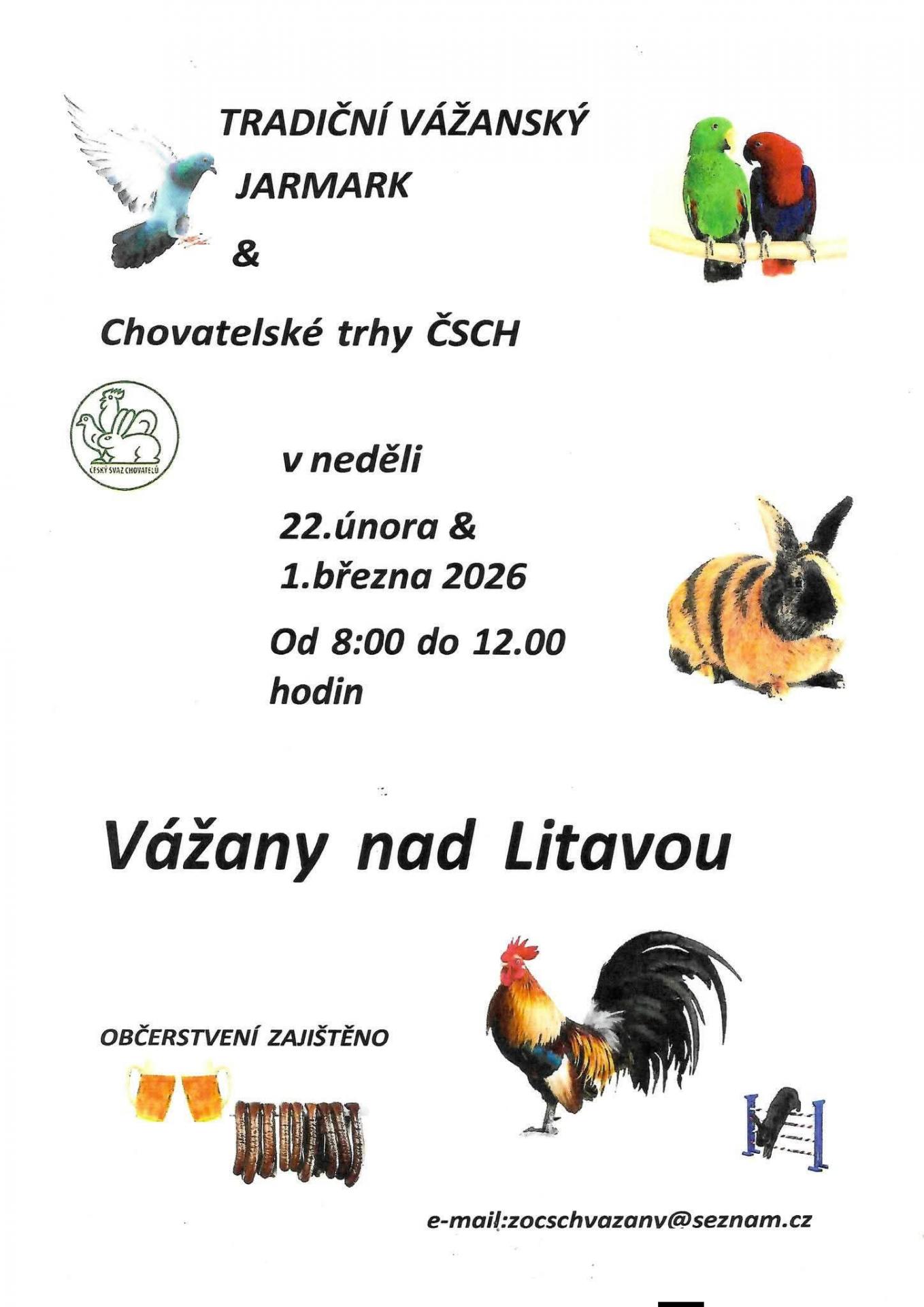 Vážanský jarmark a chovatelské trhy ČSCH 2026 - 22.2. a 1.3.2026