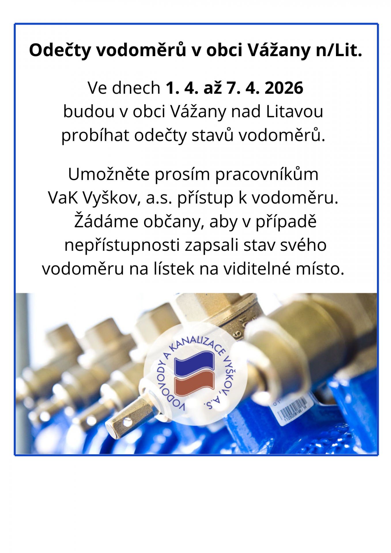 Odečty vodoměrů v obci Vážany n/Lit. - 1.4.2026 až 7.4.2026