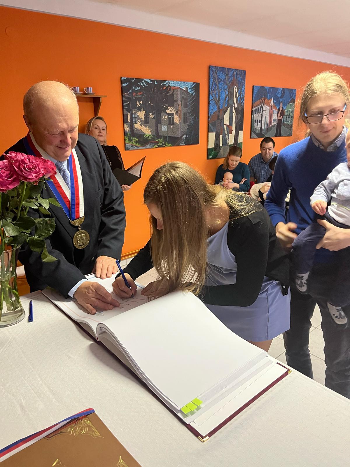 Místostarosta ve svém slavnostním projevu řekl: „Narodil se člověk, jaká to prostá věta. Po dlouhých dnech očekávání přijde krásný čas pro rodiče, kdy se narodí dítě. Je to ten největší dar, kterým nás příroda obdařila, dá se říct, že je to zázrak.“ Dále pronesl několik vět k maminkám a k tatínkům i oběma rodičům, kde na závěr popřál jménem zástupců obce a jménem svým hodně rodinné pohody, naděje, lásky, zdraví, štěstí, spokojenosti a radosti.